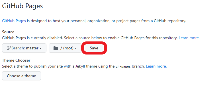Then, left click on the “Save” button to the right of the branch selection dropdown menu. An example is below with the “Save” button highlighted in red.